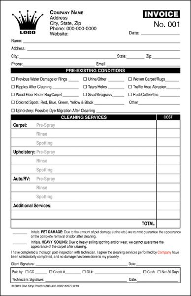 Carpet Cleaning Receipt Custom Printed 2 Or 3 Parts Carbonless Formats Individual Or Book Of 50 Designsnprint